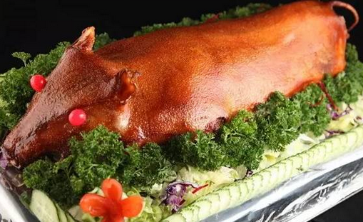 制作烤乳豬的時候先將內臟去掉,取香料腌制入味,再進行烤制,另外,豬皮含大量膠原蛋白,有養(yǎng)顏健膚功能。乳豬較瘦,脂肪含量少。色澤紅潤,光滑如鏡,皮脆肉嫩,香而不膩,讓你百吃不厭。