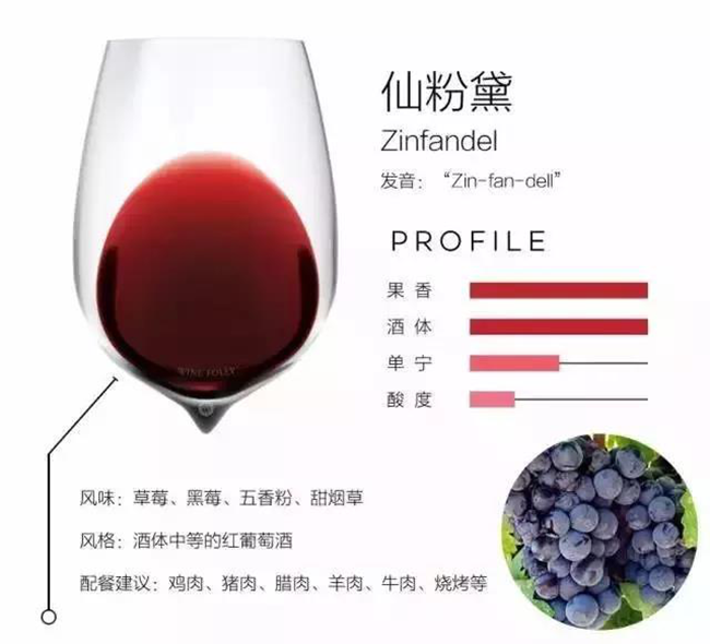 仙粉黛是一款源自克羅地亞(Croatia)的酒體中等的紅葡萄酒。這種葡萄酒果香為主,中長的余味中帶有香料的味道。