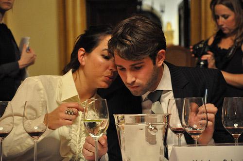 四種味感中:舌尖對甜最敏感;接近舌尖的兩側(cè)對咸最敏感;舌的兩側(cè)對酸最敏感;舌根對苦最敏感。品酒時入口不要馬上吞下,要用整個味蕾去感受葡萄酒中的味道。先將酒含在口中,做咀嚼吸氣動作,反復于口腔中進行攪動,布滿口腔四周,舌頭兩側(cè)、舌背、舌尖,并延伸到喉頭底部,讓香味散發(fā)到整個口腔中。品嘗后,葡萄酒留下來的余香具有持久性,這就是余韻。