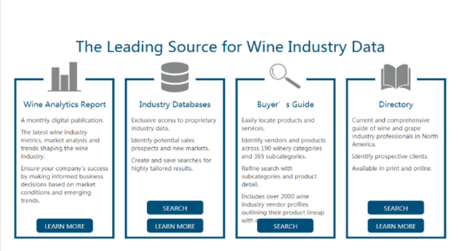 葡萄酒零售商和制造商將有更廣泛的渠道了解葡萄酒的種類,與尼爾森的季度報告的季度報告相結合,了解細分市場的規模和趨勢,按價格層次、原產地、品種和種類劃分的零售計量數據、目的地市場。用戶將有能力訪問類別和分部數據尼爾森和 DTC裝運數據部分或整體均可,聯合方案中的DTC裝運包括在酒廠的網上訂單,網站、酒廠葡萄酒俱樂部發貨給他們的成員,品酒室采購發貨到根據酒莊所在地區、年度酒莊產量和目的地追蹤銷售情況,貨物種類、品種和價格。