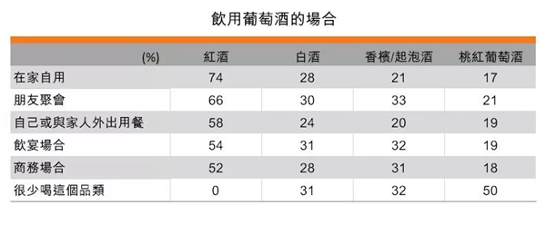 超過50%消費者在不同場合均選擇紅葡萄酒
