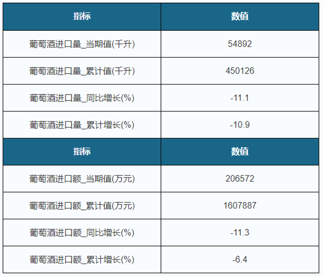 2019年1-8月我國葡萄酒進口量累計下降10.9%