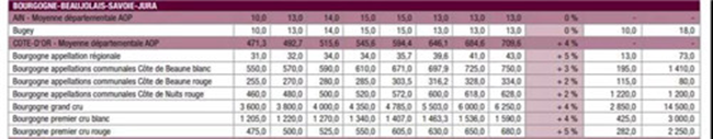 AOP白蘭地產區的葡萄園平均價格上漲了3.8%,專家介紹說,“在干邑白蘭地產區,漲勢仍在繼續,但增速卻有所放緩。因為干邑白蘭地產區委員會通過了擴大葡萄園種植面積的決議,從而緩解了當地葡萄園價格的壓力。”