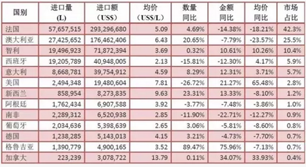 • 2017年1-4月進(jìn)口酒中,總體呈下跌趨勢(shì),其中葡萄酒微跌,英進(jìn)口啤酒猛增超5倍,白蘭地領(lǐng)漲烈性酒。 6月5日,中國(guó)食品土畜進(jìn)出口商會(huì)酒類進(jìn)出口商分會(huì)發(fā)布了2017年1-4月酒類商品進(jìn)口統(tǒng)計(jì)情況的數(shù)據(jù)報(bào)告,對(duì)包括葡萄酒、烈酒、啤酒在內(nèi)的酒類商品進(jìn)口數(shù)量及進(jìn)...