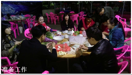 25號當天,負責(zé)采購的同事根據(jù)大家寫好的菜單,提前采購好所需要的雞、鴨、魚、肉、蔬菜等各色原料,以及油鹽醬醋等各種調(diào)味品,開始做好活動前的各項準備工作。當天下午5點,大家在公司領(lǐng)導(dǎo)莊總、劉總、曾總的帶領(lǐng)下,陸續(xù)到達活動現(xiàn)場——位于南城水濂山腳下順風(fēng)山莊內(nèi)的蒙之味烤全羊原生態(tài)KTV燒烤廣場。