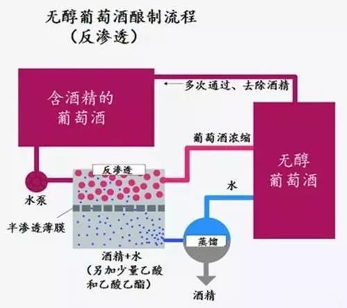 它同樣是按照葡萄酒酒的生產(chǎn)工藝釀造出來(lái)的、只不過(guò)是在裝瓶之前,利用只允許溶劑透過(guò)的半透膜,先將葡萄酒中的絕大部分酒精與其他物質(zhì)分開(kāi),再通過(guò)蒸餾的方式將酒精分離。